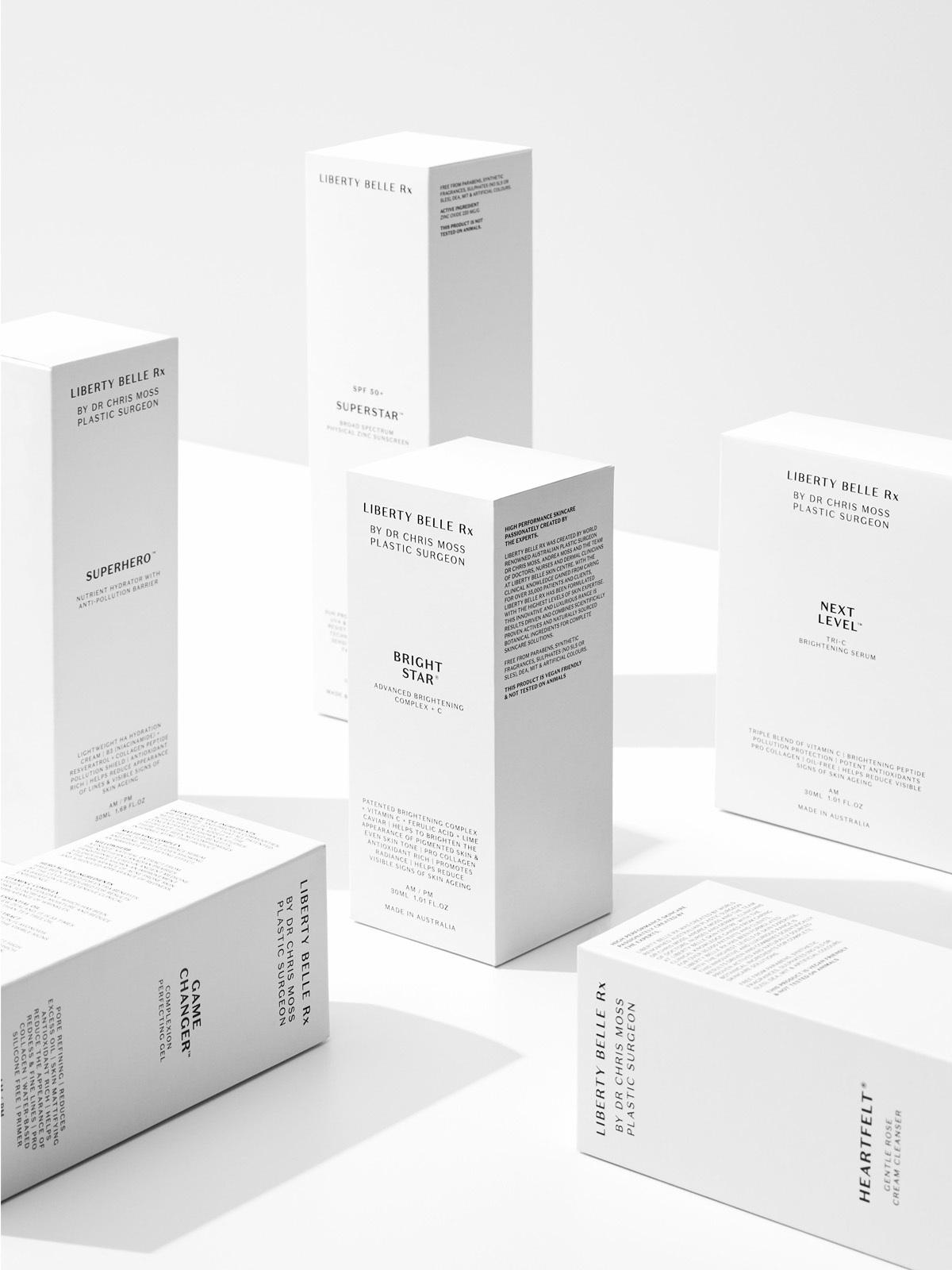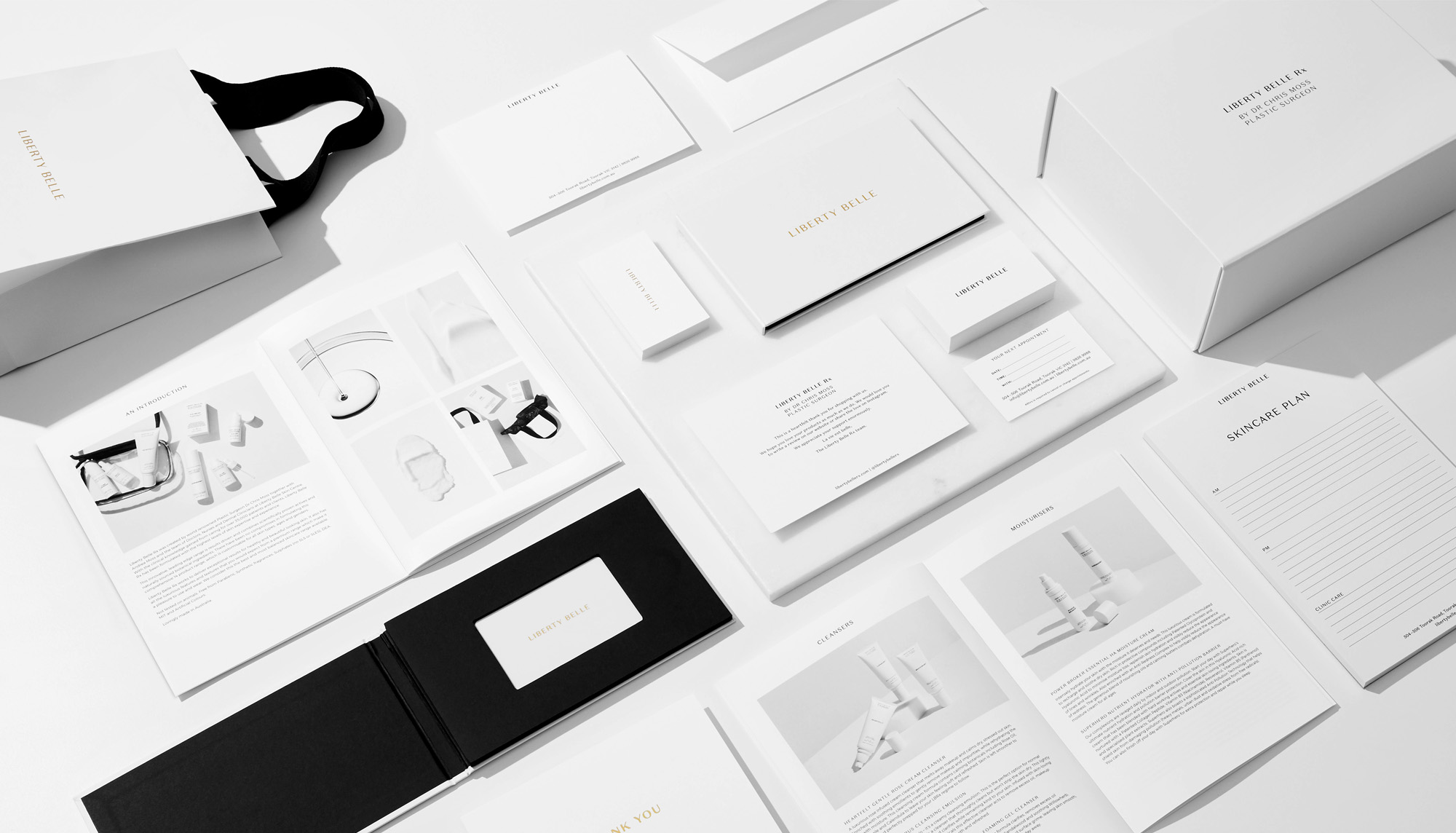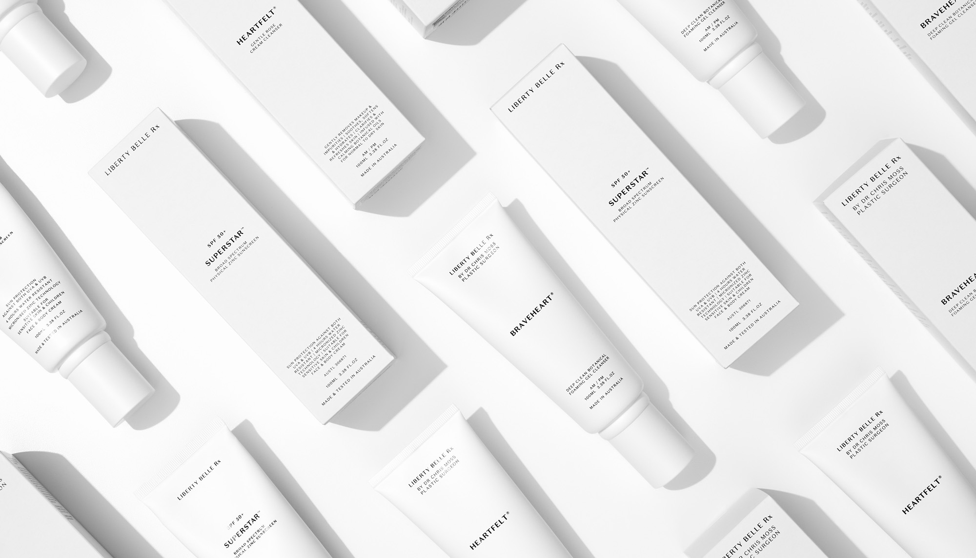 We collaborated closely on the design and production of product vessels and media kits for the launch of the Liberty Belle Rx skincare range. Classic design elements were paired with cult product names that introduce a subtle irreverence, appealing to both loyal clients and a younger, digitally fluent audience.