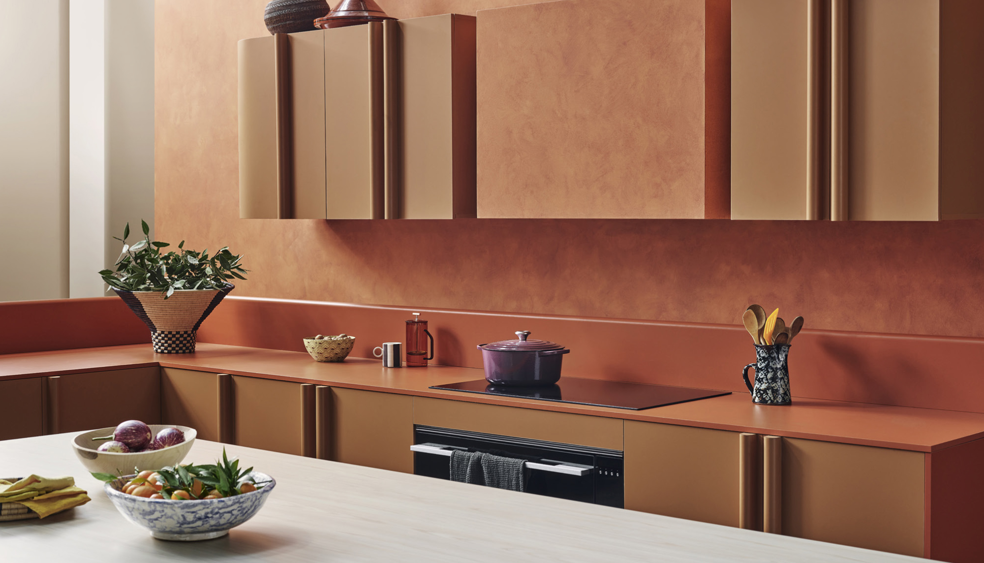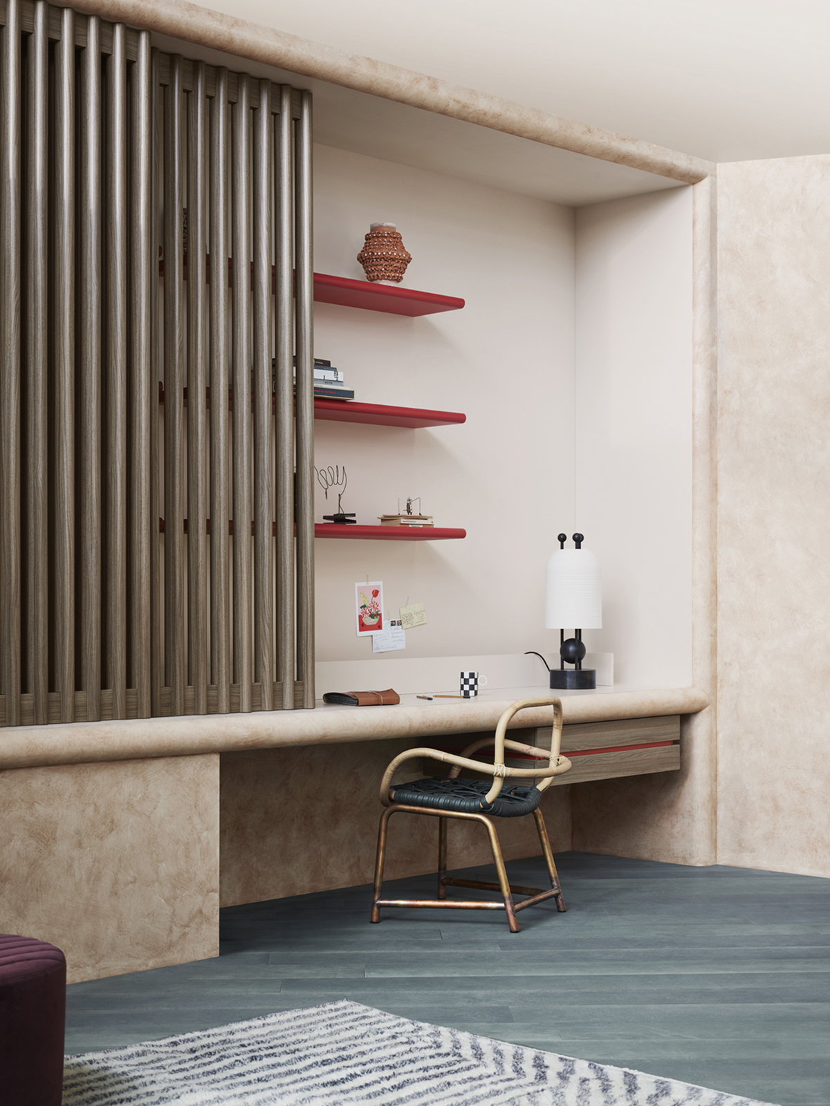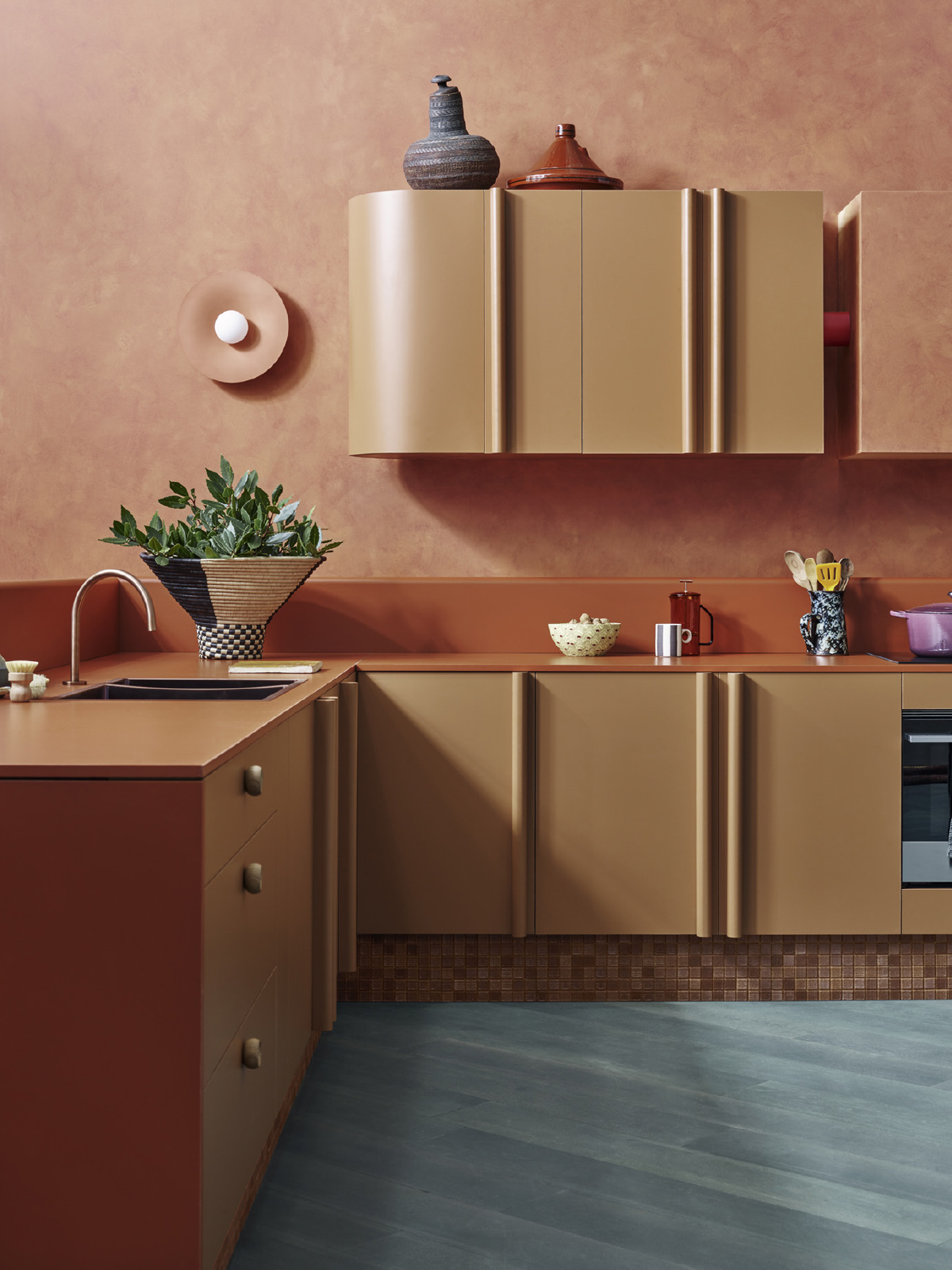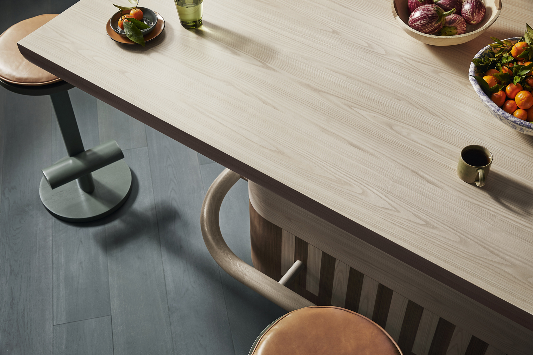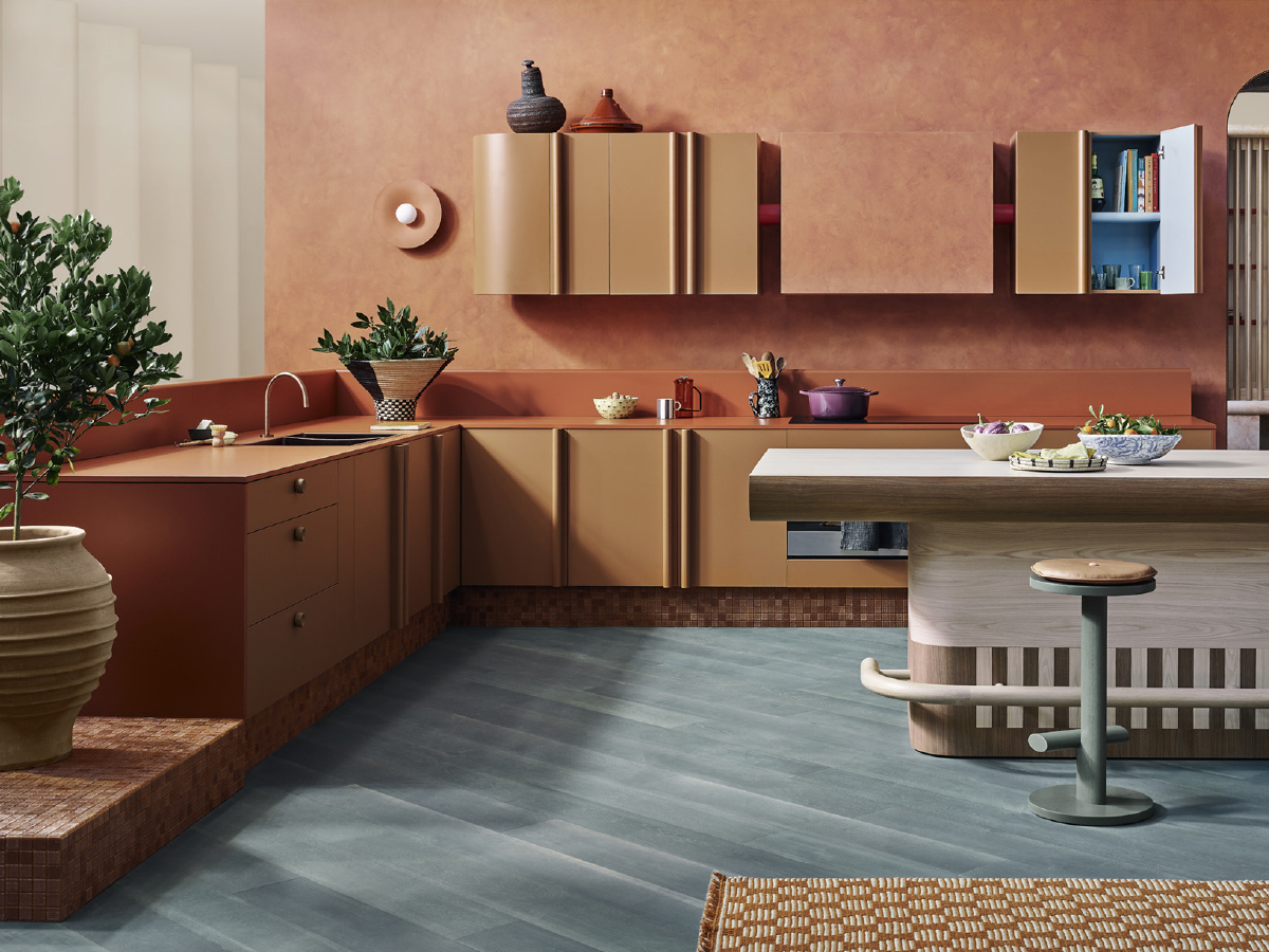 With a brief to challenge expectations and explore unconventional palettes, Sydney-based interior design studio YSG designed three adjoining spaces — a kitchen, study zone and living area — capturing the new reality of home as a place to live, work and play. Their bold, expressive aesthetic brought a fresh perspective to Laminex’s materiality and storytelling.