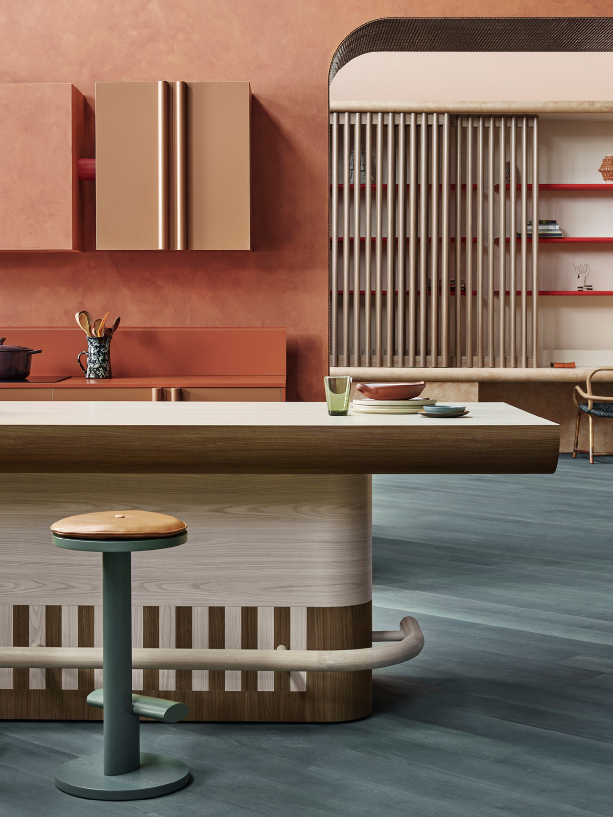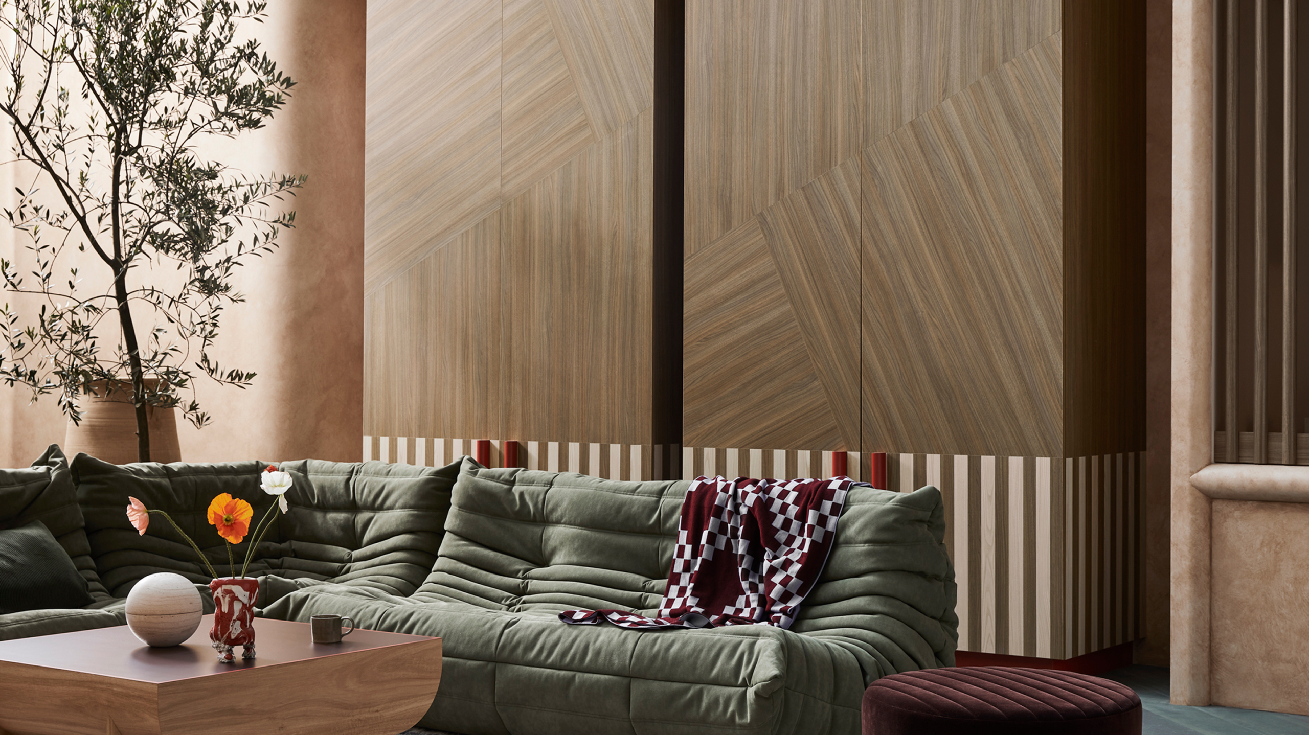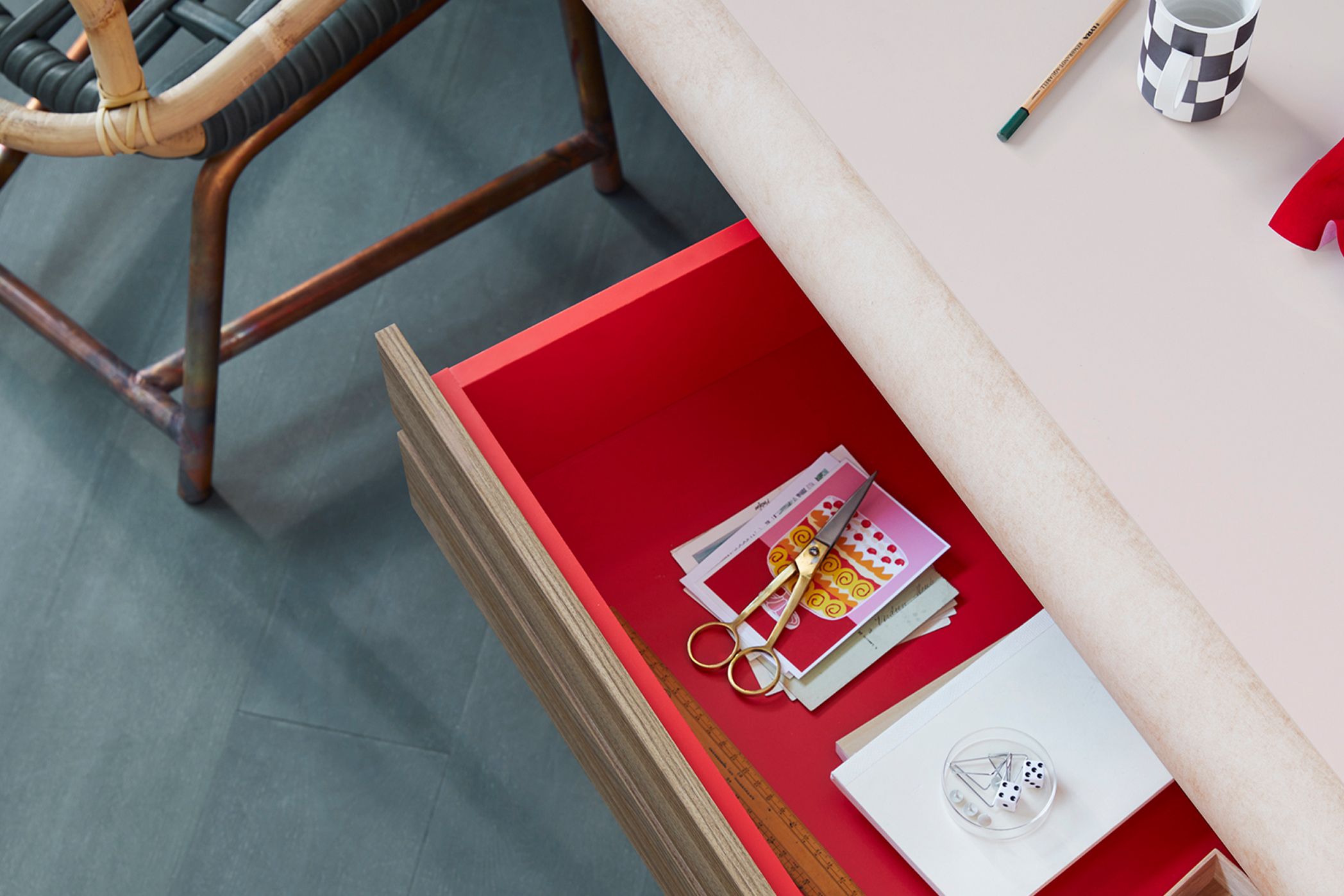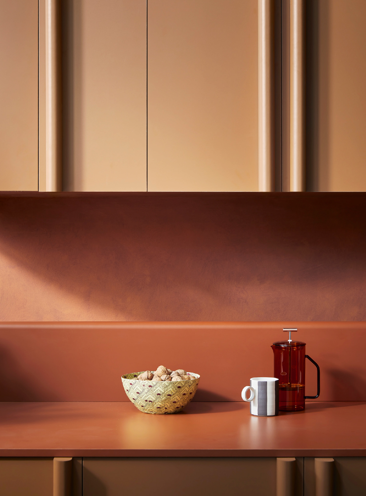 With a brief to challenge expectations and explore unconventional palettes, Sydney-based interior design studio YSG designed three adjoining spaces — a kitchen, study zone and living area — capturing the new reality of home as a place to live, work and play. Their bold, expressive aesthetic brought a fresh perspective to Laminex’s materiality and storytelling.