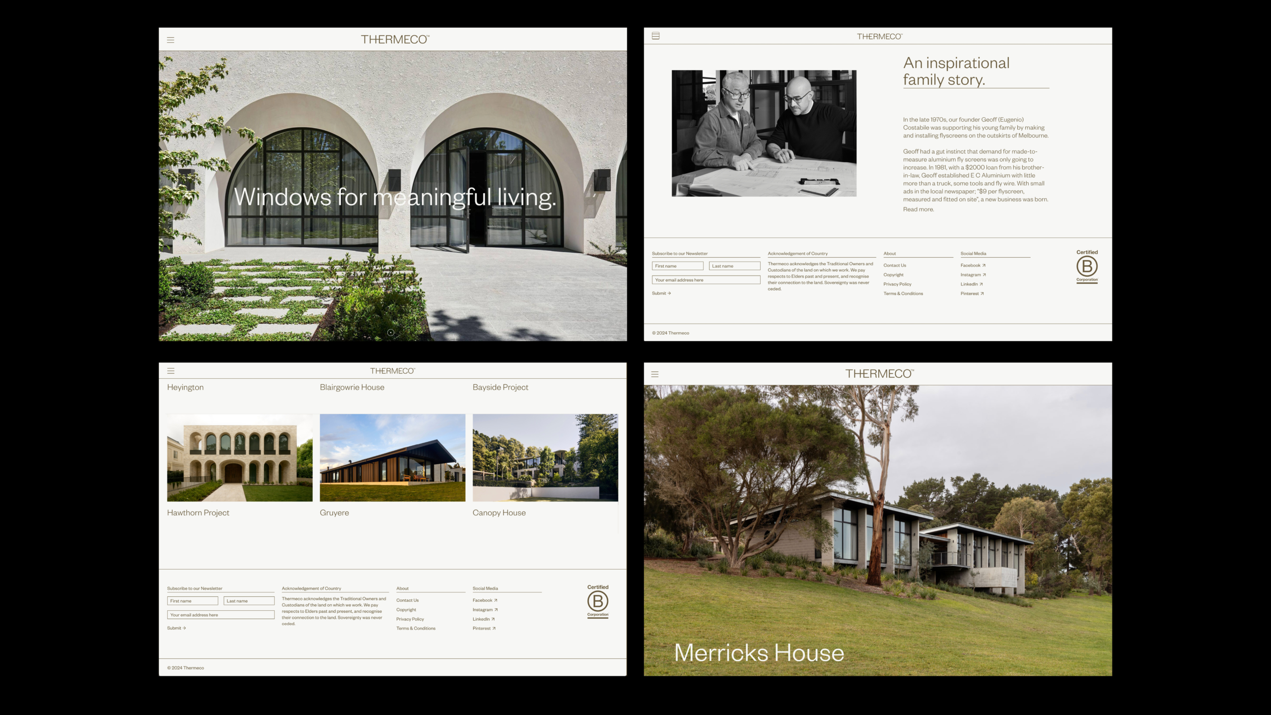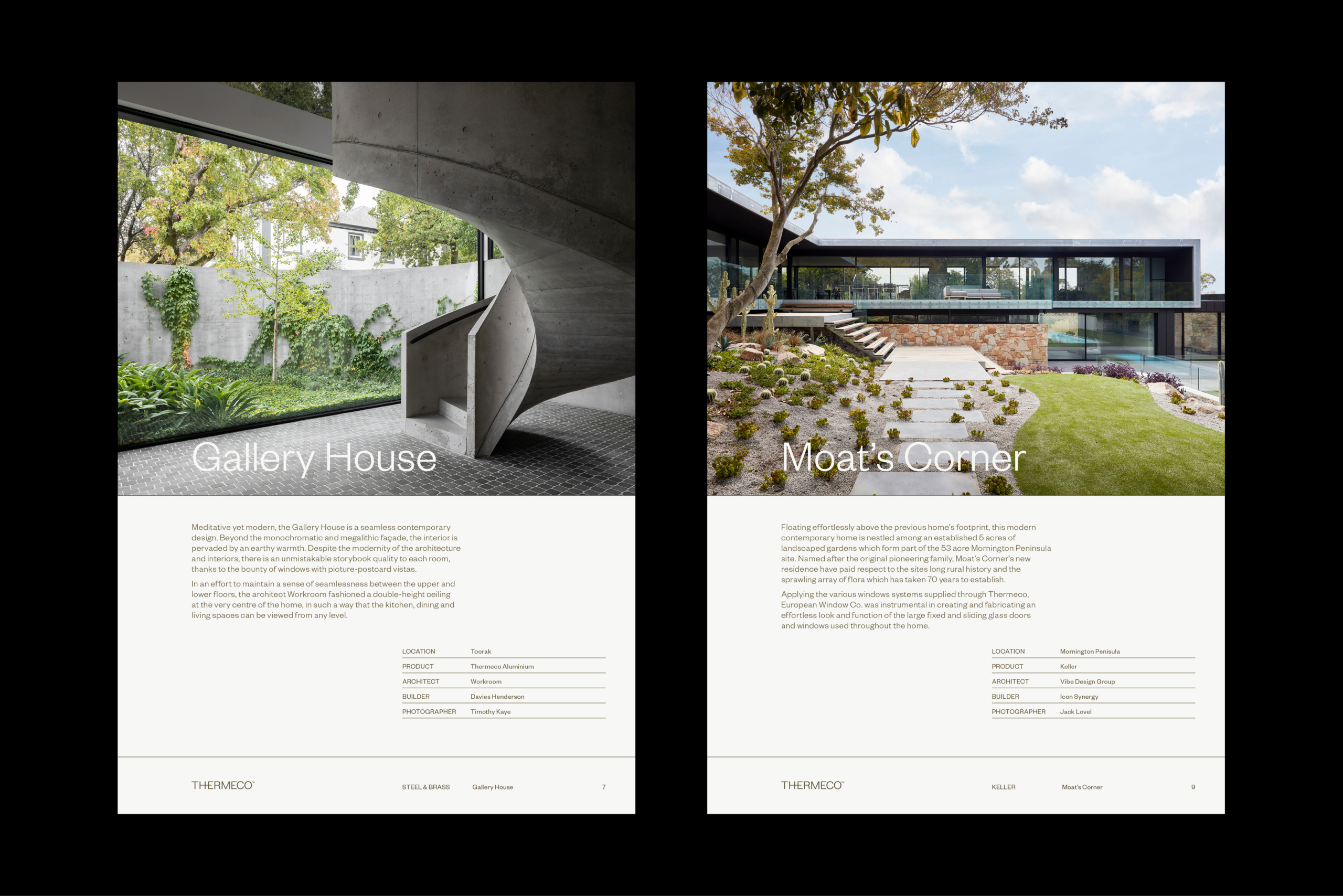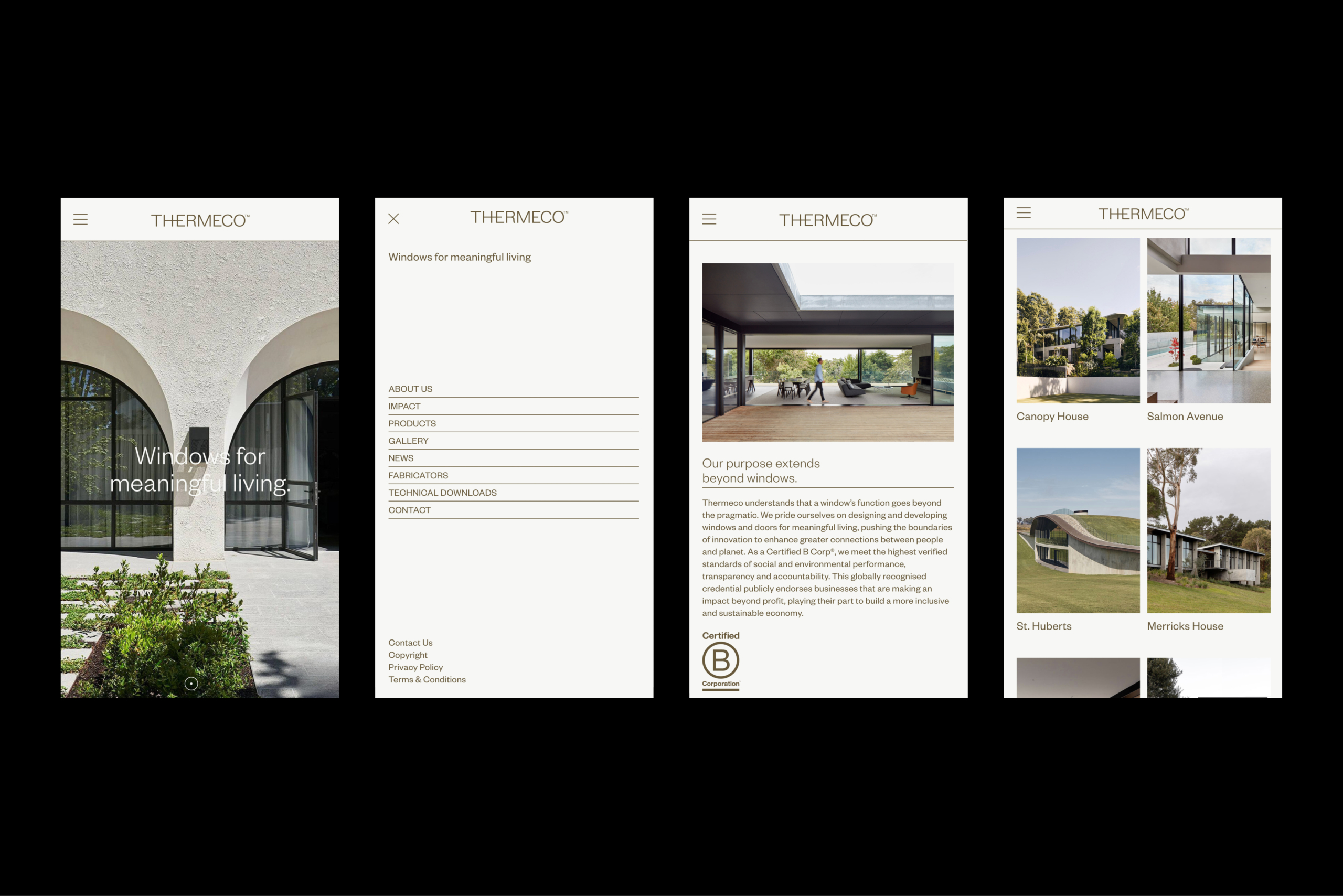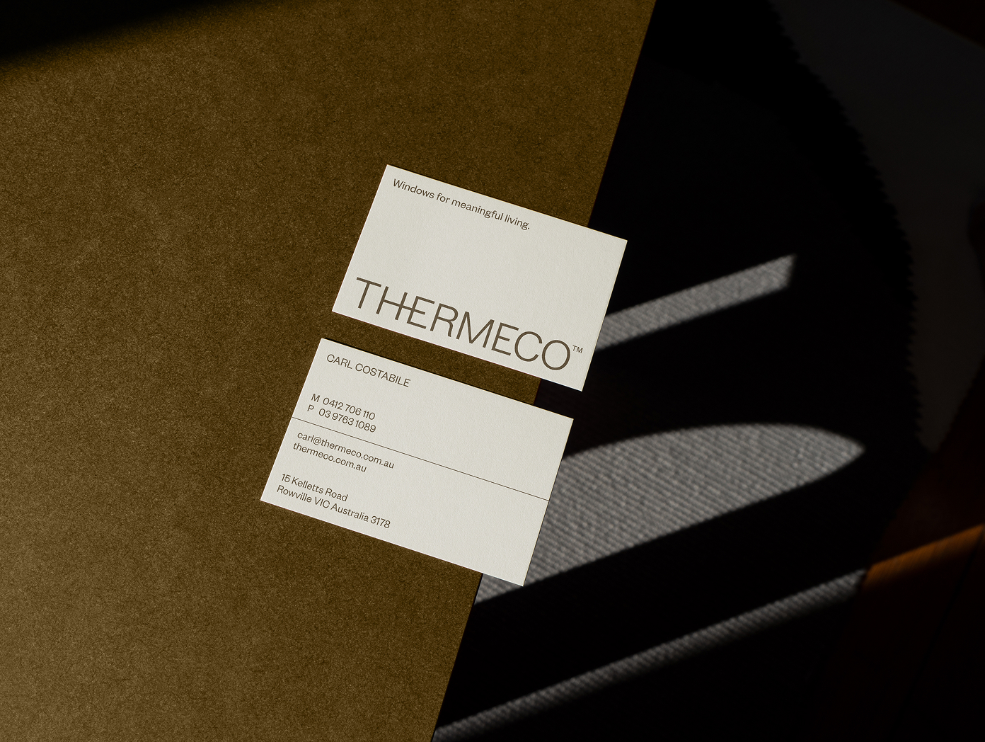 Thermeco’s brand needed to reflect the calibre of their offering — beautifully engineered, architecturally led window and door systems designed for exceptional thermal performance. The brief called for an elevated yet understated identity; one that sits quietly behind the work of the architects they partner with. We developed a language of confident restraint — light, minimal and refined, echoing the clarity and precision of the systems themselves.